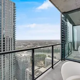 Be the first to live at The Modern Austin Residences in this 2 bed, 2 bath southeast-facing condo on the 30th floor. This 1,243 sq ft residence features floor-to-ceiling windows and a private balcony with beautiful views of Lady Bird Lake and the downtown skyline. The kitchen includes dark quartzite countertops, a full-height backsplash, and a Bosch 36” counter-depth refrigerator. The primary bathroom features a leathered Absolute Black granite vanity. The secondary bathroom is finished in light...Be the first to live at The Modern Austin Residences in this 2 bed, 2 bath southeast-facing condo on the 30th floor. This 1,243 sq ft residence features floor-to-ceiling windows and a private balcony with beautiful views of Lady Bird Lake and the downtown skyline. The kitchen includes dark quartzite countertops, a full-height backsplash, and a Bosch 36” counter-depth refrigerator. The primary bathroom features a leathered Absolute Black granite vanity. The secondary bathroom is finished in light quartz. Additional highlights include a washer and dryer, hardwood flooring, and one reserved parking space. Residents enjoy over 19,000 sq ft of curated amenities across three levels, including a 25-meter pool and spa, fitness center and yoga studio, indoor and outdoor lounges, dog park and wash station, business center, sky lounge with catering kitchen, and 24/7 concierge service. Perfectly located in the Rainey Street District, The Modern offers walkable access to Austin’s best restaurants, nightlife, and trail access along Lady Bird Lake.