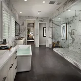 - Room Bathroom Features: Bathtub, Shower, Shower in Tub, Double Sinks In Master Bath, Exhaust fan(s), Linen Closet/Storage, Privacy toilet door, Quartz Counters, Separate tub and shower, Soaking Tub, Walk-in shower