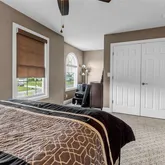 - Interior Features: Ceiling Fans, Eatin Kitchen, Kitchen Island, Living Dining Room, Pantry, Pull Down Attic Stairs, Quartz Counters, Sliding Glass Doors, Bathin Primary Bedroom