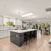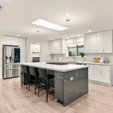 - Kitchen: Cooktop - Gas, Countertop - Quartz, Dishwasher, Island, Microwave, Oven Range - Gas, Pantry, Refrigerator, Skylight