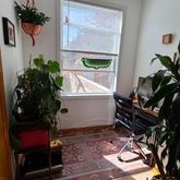 The bedroom comfortably accommodates a queen bed and enjoys an abundance of morning sunlight, while the kitchen and dining area are showered in afternoon sunlight. An additional room may be used as a home office, guest bedroom or additional living space.