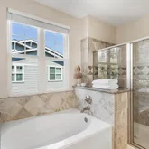 - Bathroom: Double Sinks, Granite, Half on Ground Floor, Primary - Oversized Tub, Stall Shower, Stone, Tub in Primary Bedroom