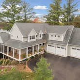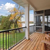 views & sunsets with west facing landscaped & tree-filled lot! Welcoming wrap around porch leads you into the great room w/repurposed hardwood floors, tons of windows, offering lake views! Open concept kitchen boasting center island, high-end appliances, soapstone counters, huge bank of windows over counters...Stunning custom-built two-story loaded with great attention to design & unique details throughout.