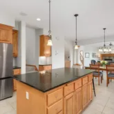 formal dining space perfect for any occasion. The large open living space flows seamlessly into a kitchen