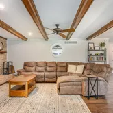 • Interior Features: Ceiling Fan(s), Combination Kitchen/Dining, Combination Dining/Living, Entry Level Bedroom, Exposed Beams, Floor Plan - Open, Kitchen - Table Space, Pantry, Primary Bath(s), Stove - Wood, Upgraded Countertops