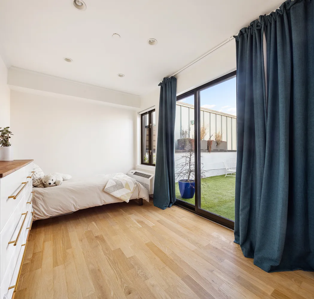 Climb the beautiful floating staircase with custom steel railings to your private top floor retreat! Here you’ll find the king-size primary bedroom with windows overlooking brownstone Brooklyn and a customized walk-in closet space which leads to the spa-like ensuite bathroom. This level also features a bonus space – currently being used as a child’s bedroom, but perfect for either a sunny home office or an additional bedroom/guest room. The highlight of this floor is the expansive private terrace where you can enjoy Brooklyn rooftop views and open sky for miles; a peaceful garden oasis with room for outdoor grilling, dining and entertaining.