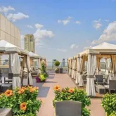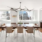 Entering through the gracious foyer, you will find a beautiful powder room and a mudroom equipped with two washing machines, two dryers, a wine refrigerator and an extra refrigerator - all of the conveniences of a suburban garage in an ideal urban setting! As you enter through the property, you are instantly bathed in southern sunlight from wall-to-wall windows spanning 44 feet of your living room, dining room and windowed, chef’s kitchen. The sleek kitchen has been smartly designed with warm tone cabinetry, top-of-the-line Miele and Bosch appliances and abundant storage, including a large pantry. The large marble breakfast bar in the kitchen opens onto the informal dining and living room offering a blend of sophisticated, yet modern living. From the informal living space you will find a striking entertaining space providing formal living and dining areas with wide open southern and western views.