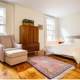 This inviting upper duplex offers a private entrance, 2 very large bedrooms, a home office or nursery, soaring ceilings, wide plank oak hardwood floors, 3 absolutely beautiful fireplaces (2 deco & 1 wood...Convertible 3BR! Rarely does an opportunity like this present itself. Tucked away on one of the most beautiful blocks of New York City you will find this historic Townhouse. Originally constructed in 1836 by Peter Gerard Stuyvesant, 102 East 10th street offers old-world charm and modern convenience.