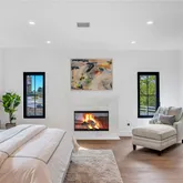 Down the hall, you'll find three large bedrooms with finished closets and built-in desk space, including two guest bedrooms that share a Jack and Jill bath a third bedroom with a spacious en suite, and an office with fireplace. The laundry is conveniently located in the hall. The master suite is tucked away at the end of the hallway and features a fireplace, a spa-like master bath with his and hers integrated marble sinks, a huge shower, and a separate freestanding tub. The custom master closet provides ample storage space. The brand-new guest house, with its own entrance and dedicated parking for two, boasts a full kitchen, living room, one bedroom, one bathroom, and a laundry space.