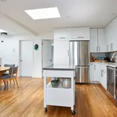 This spacious and airy 2 bedroom/2 bath apartment is on the top floor of an extra wide Boerum Hill townhouse on a pretty tree-lined block. The large eat in kitchen bathed in light thanks to a skylight overhead is the heart of the home, and opens onto the living room with two more windows, overlooking Pacific Street. The primary bedroom is king sized and has an en-suite bath with walk in shower. The second bedroom, off the living room, will easily accommodate a full bed or twin bed... or would make...This spacious and airy 2 bedroom/2 bath apartment is on the top floor of an extra wide Boerum Hill townhouse on a pretty tree-lined block. The large eat in kitchen bathed in light thanks to a skylight overhead is the heart of the home, and opens onto the living room with two more windows, overlooking Pacific Street. The primary bedroom is king sized and has an en-suite bath with walk in shower. The second bedroom, off the living room, will easily accommodate a full bed or twin bed... or would make an ideal home office. A second bath and in unit stacked washer-dryer round out the apartment. The location puts you on a pretty tree-lined street convenient to transportation, restaurants, cafes, and shopping (Trader Joe's, Whole Foods, Brooklyn Fare, etc).