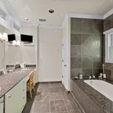 - Room Features: Built-in Cabinets, Custom Closet System, Ensuite Bath, Jetted Tub, Linen Closet, Medicine Cabinet, Natural Stone/Granite Type, Walk-in Closet(s)