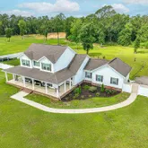 Farmhouse meets sophistication in this 4-bedroom, 3 bathroom custom-built, luxurious home on over 7 acres in Pace FL. (Also included is 5 acres of parcel: 41-3N-30-0000-00105-0000) The property is zoned AG-RR and already features a pond just add the well, so bring your horses, livestock, and your country living plans. As you enter the home through double, 8' solid wood doors, you are greeted by durable wide-plank wood-look tile throughout the home, rounded corner sheetrock, and soaring vaulted ceilings....Farmhouse meets sophistication in this 4-bedroom, 3 bathroom custom-built, luxurious home on over 7 acres in Pace FL. (Also included is 5 acres of parcel: 41-3N-30-0000-00105-0000) The property is zoned AG-RR and already features a pond just add the well, so bring your horses, livestock, and your country living plans. As you enter the home through double, 8' solid wood doors, you are greeted by durable wide-plank wood-look tile throughout the home, rounded corner sheetrock, and soaring vaulted ceilings. The kitchen boasts quartz countertops, custom cabinetry, dual built-in ovens, flat-top stove, and upgraded LED lighting. The living room features a stylish electric fireplace with 400 sq ft range heater, while double french doors lead to a large, screened in porch perfect for watching sunsets across the pond and private woods. The spacious owner's suite is located downstairs along with an additional bedroom and bathroom. Upstairs, you will find two additional bedrooms with unique jack-n-jill style walk-in closet, additional full bathroom, and a large finished bonus room/office, all overlooking the large open living area. Built with quality and energy savings in mind, the home boasts foam-seal construction, LED upgraded lighting throughout, dual AC units, electric water heater with backup electric tankless on top, same tile throughout house, upstairs floor dura-rocked on top of 3/4 decking with tile laid over. Exterior features, rain gutters, beautiful landscaping, vinyl privacy fence, and security system.