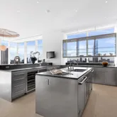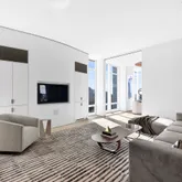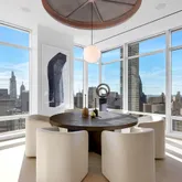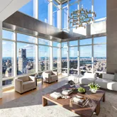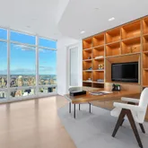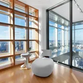 Other notable features of this residence include 12’ tall windows that stretch over 400 linear feet, showcasing 360-degree views of Manhattan, central HVAC zones, an in-home Crestron System with touch pads in every room to control lighting, temperature, electronic window shades, surround sound and more. There is a home security system and backup generator for computers.
