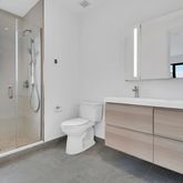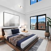 There are two spacious bedrooms in the rear of the unit that have double height ceilings and offer complete privacy and serenity. The larger of the two bedrooms has an en-suite bath with a double vanity, radiant floor heating and windowed shower. The lofted second level is spacious retreat from it all. A very flexible space, it can easily be used an expansive king-size bedroom or at-home studio/office. On this level you will also find a full bath with windowed shower. The building is equipped with a state-of-the art virtual doorman system with complete functionality from your phone.