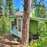 Writer’s cabin with potbelly stove and sleeping loft—your ideal retreat or office