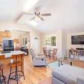 - Room Kitchen Features: Kitchen Open to Family Room, Kitchen Island, Quartz Counters, Remodeled Kitchen, Self-closing cabinet doors, Self-closing drawers, Stone Counters, Tile Counters