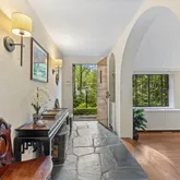 - Public Remarks: Tucked away just minutes from Greenwich Avenue, this enchanting 1933 stone and half-timbered Tudor sits on .65 acres overlooking a tranquil brook. With rich architectural detail and surprising spaces, this home offers charm and character at every turn. The sunny, dramatic living room features a soaring beamed cathedral ceiling, striking fieldstone fireplace, and triple exposures through large casement windows. The fully renovated kitchen by Deane includes an adjoining office, while a spacious dining room doubles perfectly as a cozy family room. Upstairs, the entire second floor serves as a luxurious primary suite—complete with a serene bedroom, sitting room, fully renovated marble bath, and new laundry.