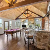 - Room Description: Stunning, vaulted great room with rock bar and wood-burning fireplace. Wood floors and paneled ceiling and door to back deck. Open to kitchen, so perfect for entertaining. This was an addition to the home in 2014.