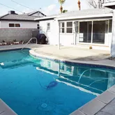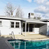 and private pool. Spacious living room and dining area with sliding glass door leading to rear yard covered patio area and pool. Kitchen comes with stainless steel appliances and ample cabinet space. 3 bedrooms and many ceiling fans that complement the