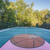 - Exterior Features: Sport Court, Tennis Court(s), Hot Tub, Water Fountains, BBQ Grill, Extensive Hardscape, Exterior Lighting, Flood Lights, Lawn Sprinkler, Stone Retaining Walls, Underground Lawn Sprinkler