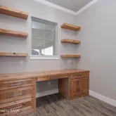 - Room Description: built-in desk; open shelves.