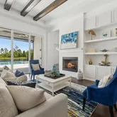 - Public Remarks: This home exudes elegance from the moment you walk in & at every turn with its upgraded custom wood accent walls in every room!! Family room is stunning w/ beautiful beamed ceiling, full wall of mirrors & a gas fireplace. Kitchen overlooks the family rm & not a detail was missed in this amazing kitchen w/an eat in area & a beautiful accent wall. From here you will be immediately drawn to the backyard where a breathtaking pool awaits complete w/a gas heated hot tub on the right & a huge sunken wood burning firepit w/ lots of seating on the left. Summer kitchen has been plumbed & waiting for you to complete. Inside is a huge owners suite & glamour bath in every sense of the word overlooking pool. As you enter this home a private office awaits w/ French doors, built ins and custom walls. 4 more bdrms/2 baths complete this hm. Just steps to Beachwalk's Crystal Lagoon, swim up bar and sandy beaches. Tennis, pickleball, dog park and putting green for you to enjoy. Home is a must see!