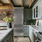 The English basement features a chic farmhouse style eat-in kitchen with beamed ceiling and an exposed brick wall with built-in wood burning fireplace all rounded out with custom bead board cabinets topped off with soft white marble counter-tops. While timeless in it’s aesthetic, the kitchen has been expertly renovated to meet chef’s standards with a breakfast bar/island, Viking and Subzero stainless steel appliances, built-in wine refrigerator. The third full bath is also located on this floor as well as a rear sitting area which can serve as additional dining off of the eat-in kitchen. To top it all off, there is a private yard offering a fantastic space for entertaining, to plant a garden, or to relax and enjoy a bit of quiet outdoor solitude in one of Manhattan’s most desirable neighborhoods.