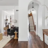 Upon entry to the parlor level, you are met with an arcade of arched doorways opening into a gracious and intimate layout of perfect entertaining spaces. Offering flexibility of uses, the front and rear parlors feature 10ft ceilings, hand-scraped walnut floors, crown moulding, and each have wood burning fireplaces with antique wooden mantels. Both rooms have a special glow with the open concept allowing both north and south light – the front parlor overlooks Downing Street to the north and the rear parlor opens to the rear garden to the south with a 7ft tall in-swing window.