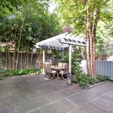 Ideal for entertaining, this garden has a shading arbor and a cleft bluestone patio with Belgian block trim, and is surrounded by a mature climbing hydrangea, a 45-foot River Birch tree and a wall of mature, evergreen bamboo.