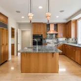 - Kitchen: Cooktop - Gas, Countertop - Granite, Dishwasher, Exhaust Fan, Garbage Disposal, Hood Over Range, Island with Sink, Microwave, Oven - Built-In, Oven - Double, Oven - Electric, Oven - Self Cleaning, Pantry, Refrigerator, Trash Compactor