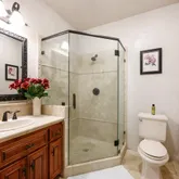 - Bathroom: Double Sinks, Full on Ground Floor, Half on Ground Floor, Primary - Oversized Tub, Primary - Stall Shower(s), Primary - Tub with Jets, Showers over Tubs - 2+, Stall Shower - 2+, Stone, Tub in Primary Bedroom