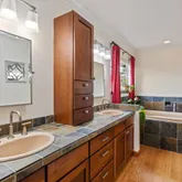 - Bathroom: Double Sinks, Full on Ground Floor, Primary - Oversized Tub, Primary - Stall Shower(s), Primary - Tub with Jets, Shower and Tub, Skylight, Stone, Tub in Primary Bedroom, Updated Bath