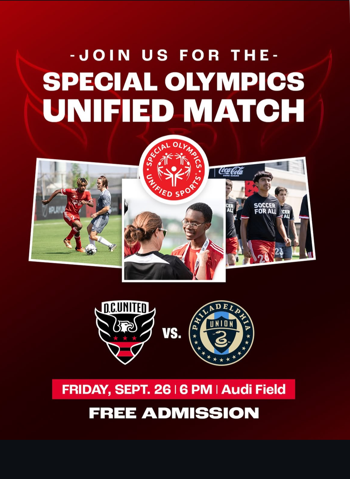 Come out to Audi Field on Friday, September 26 at 6 PM to support our local Special Olympics Unified Team as they face-off against Philadelphia Union's Unified team. It's free to attend so don't miss this exciting and inspiring match!