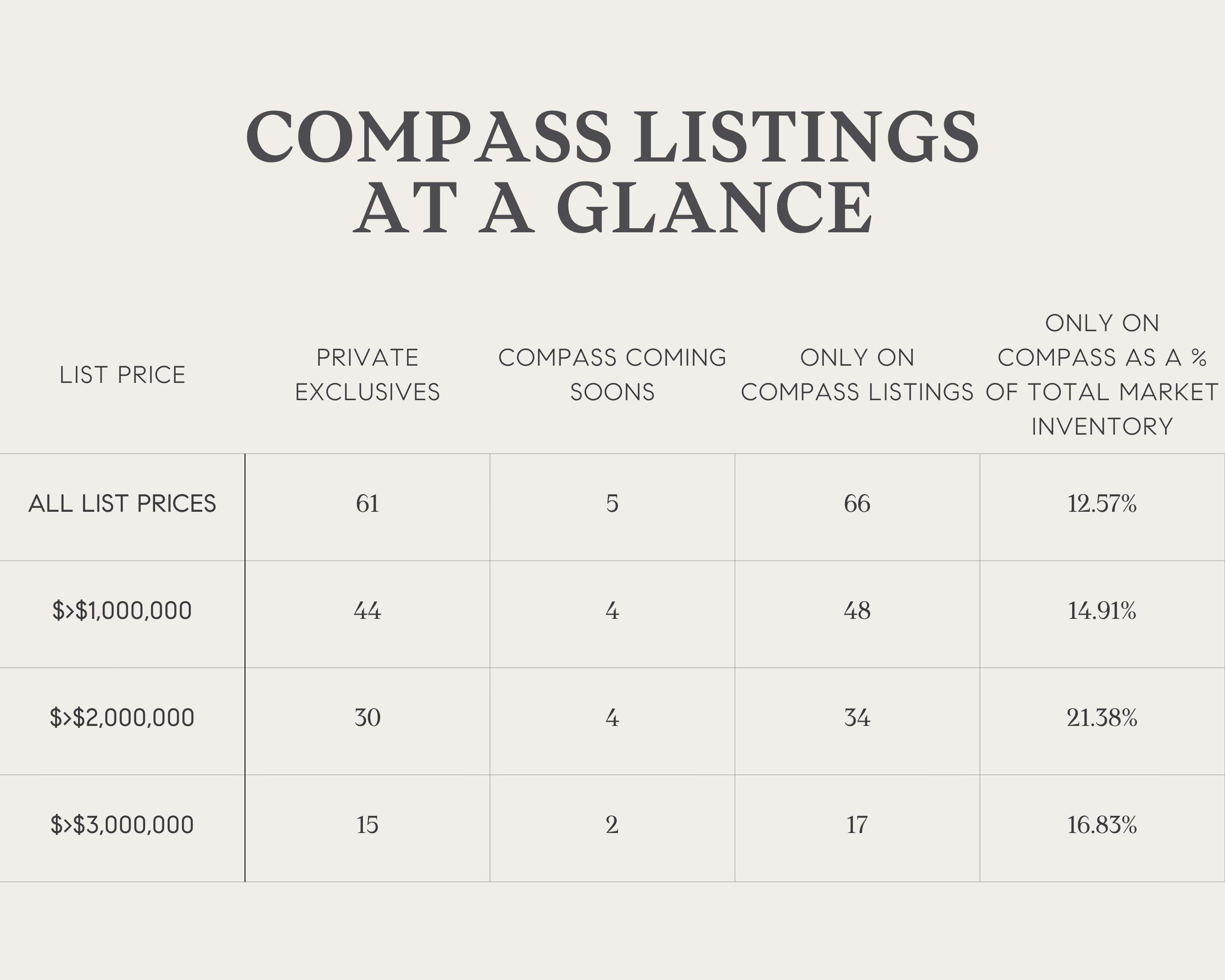 | -That currently there are 66 homes that Buyers can only see on Compass?